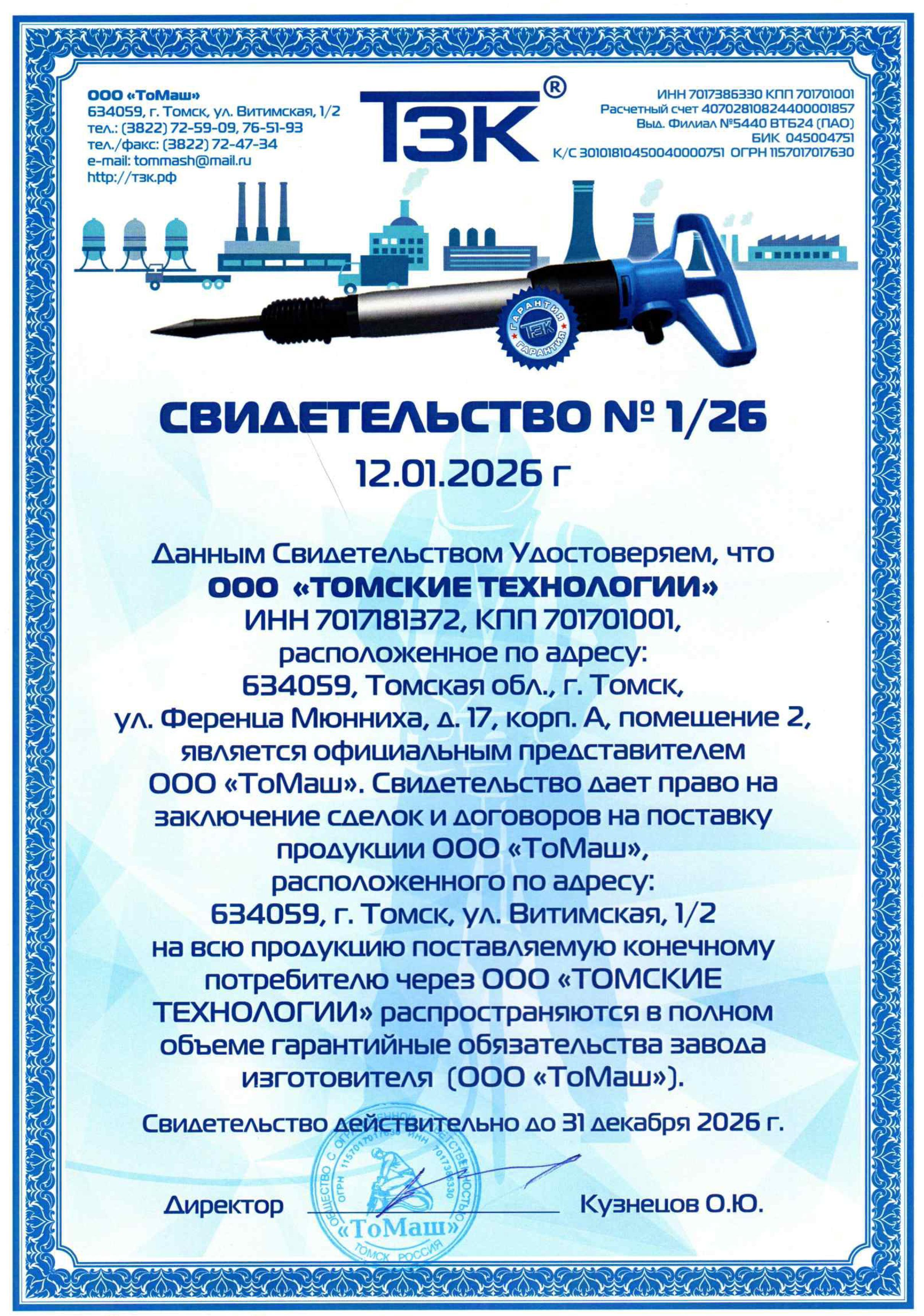 Мы являемся официальным дилером завода ООО “ТоМаш” и поставляем качественный инструмент, который уже успел завоевать доверие миллионов специалистов области!