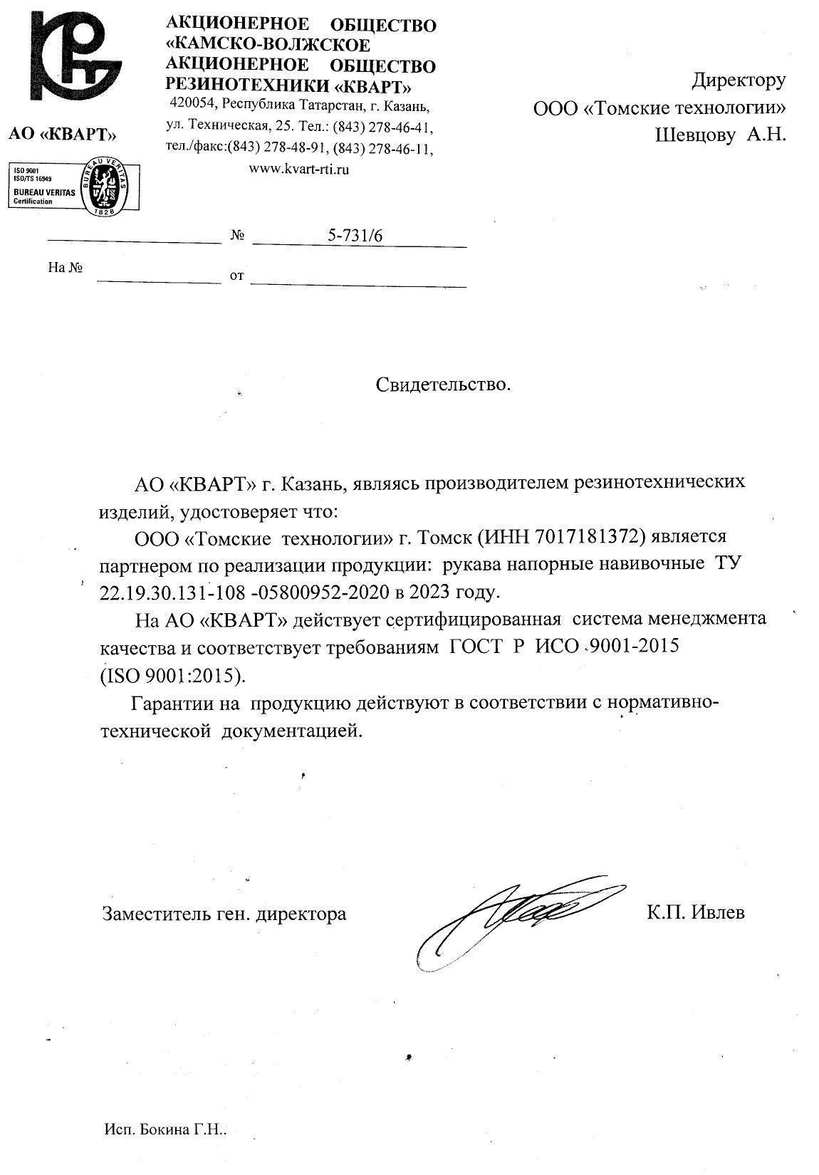Согласно свидетельства от 28.02.2023 года ООО «Томские технологии» является партнером по реализации продукции